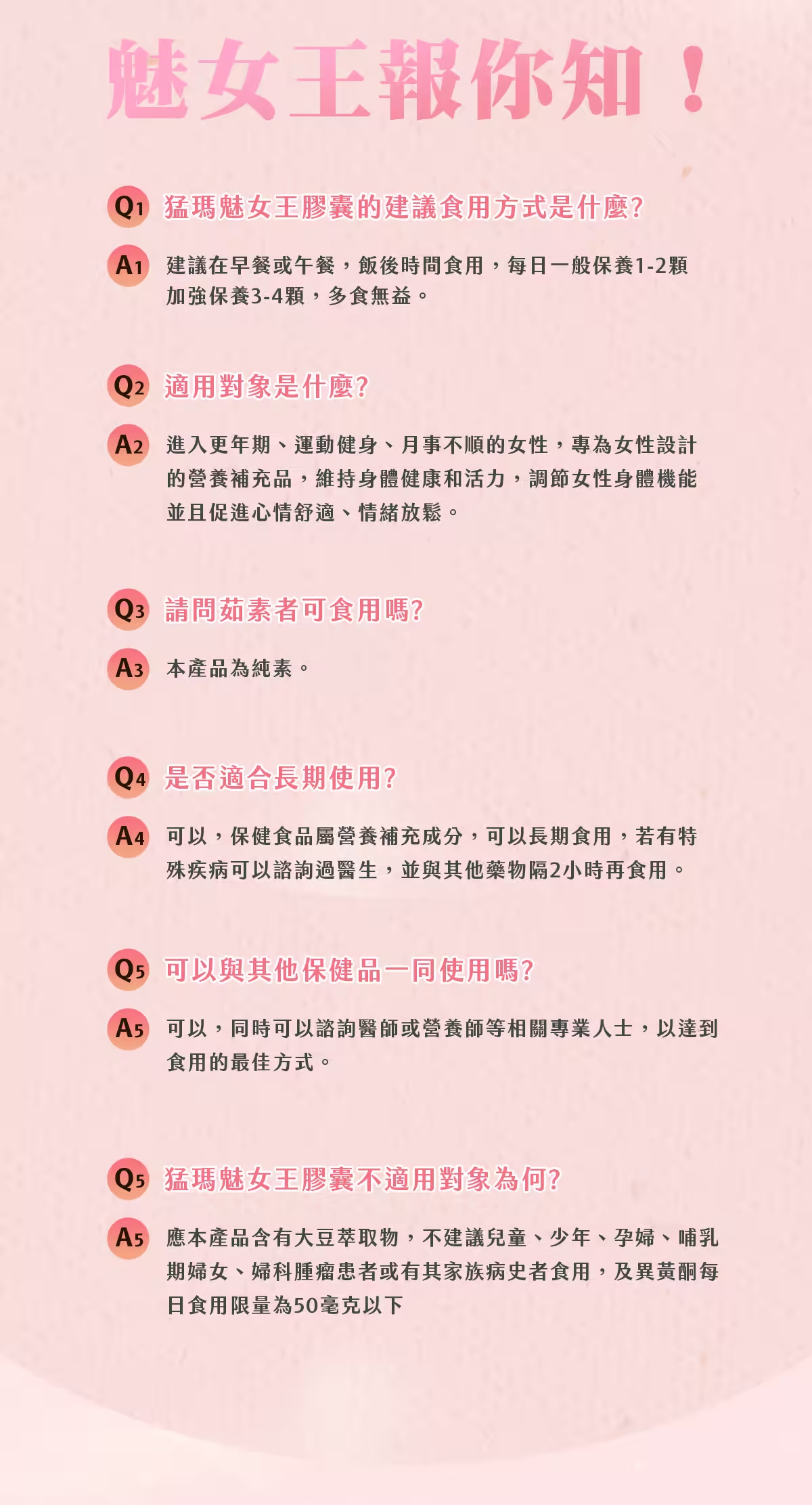 🔹本產品不適合正在懷孕、哺乳階段、有子宮肌瘤、對大豆過敏者食用
