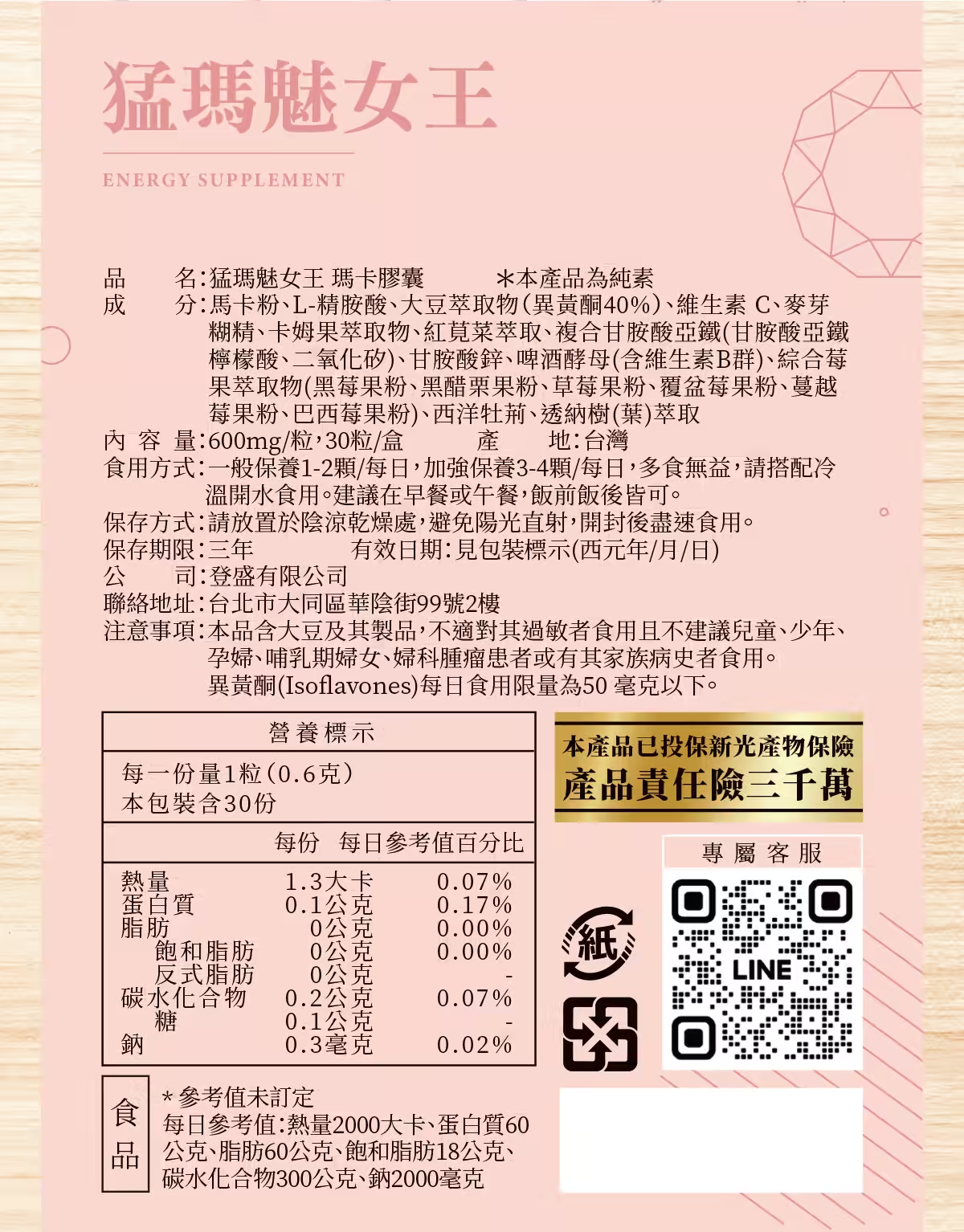 【團購主體驗招募】宅配試用|在每個月的特殊時刻依然充滿魅力與活力✨【猛瑪魅女王】女性瑪卡膠囊30入/盒